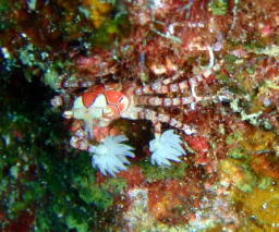 イソギンチャクを両手に振りかざし威嚇するその姿が なんとも可愛いキンチャクガニ サンゴをめくると裏側についています(^O^)♪ |