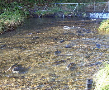 | 翌日は、シロザケの遡上観察! 今年は遡上が始まるのが少し遅かったそうですが おかげでこの数! たくさんのドラマが目の前で 繰り広げられました! 時間も忘れて 観察し続けました! |