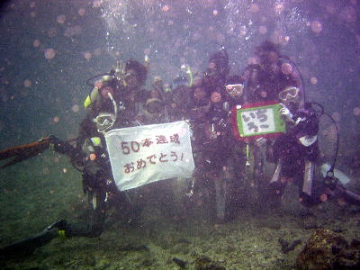 50本記念のMくんは 大好きなビーチでお祝いできて大喜びでした〜♪ 2009年も潜りまくって行きましょうね〜\(^O^)/ |