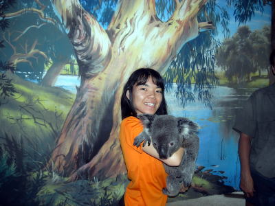 念願のコアラ抱っこ! 最近では、ケアンズのあるクイーンズランド州でしか コアラ抱っこはできないそうです。 |