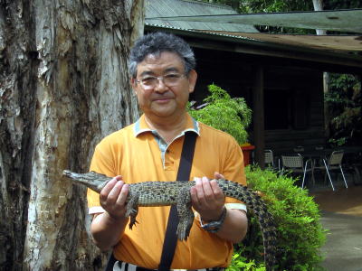 | なんと、ワニを持っちゃいました! 冷たい感触。。。 |