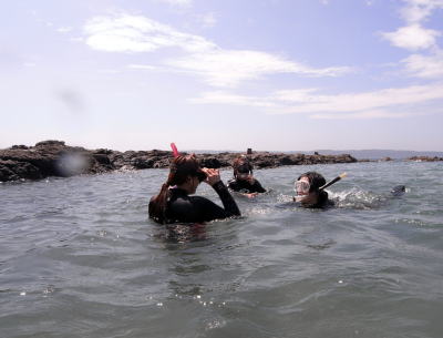 休憩中はシュノーケリングで お魚観察&貝拾いをして遊びました〜! |