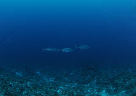 ここからは2年連続ご参加のK様のお写真です! 今年はなんとBIGポイントのトンバラに 4回も潜れちゃいました!! まずは1本目のトンバラで遭遇したイソマグロの群れ♪ しかも中には1mオーバーの超丸々太ったリーダーも(*^。^*) 迫力満点でしたね〜! |