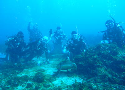 | そして、みんなより一足先に 先輩ダイバーでもあるお姉さんと一緒に赤鯱温泉へ LET'S DIVE♪♪ 海の中も気持ちよかったけど、温泉も気持ちいいなぁ〜〜 ダイビング後、余裕のAさんでした〜(^o^) |