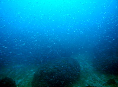 イスズミ礁はキビナゴ祭り♪♪ 360°ぜ〜んぶキビナゴ!!!!! キラキラしすぎて、前がみえませんっヾ(^▽^)ノ |