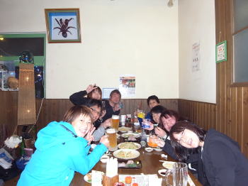 カンパーイ! 最終日の夜は、居酒屋さんへ行って 打ち上げです♪ ビールもご飯も美味しかった〜〜〜♪ |