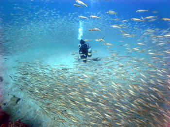 | ひゃあ〜〜〜〜 スゴイアジの大群に囲まれました! |