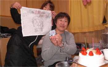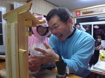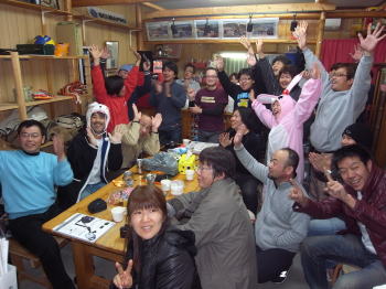 | ダイビング後は、お餅つき! なんだか動物がいっぱいの餅つきです。 |