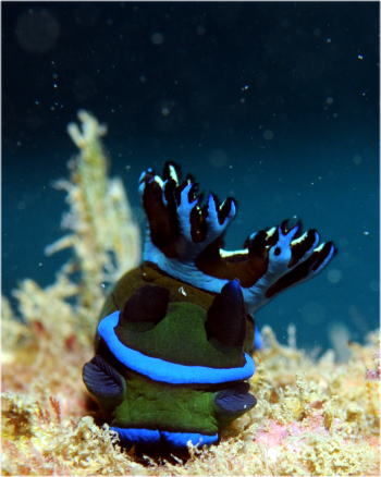 ミドリリュウグウウミウシは やたらたくさん?!いましたよ。 沈船で一番たくさん見たウミウシです。 まるで粘土細工みたいですよね。 |