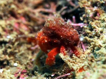 こちらはちいさ〜なイボイソバナガニ。 サイズ的には上のムチカラマツエビと同じくらいですけどね。 小さい個体です。 |