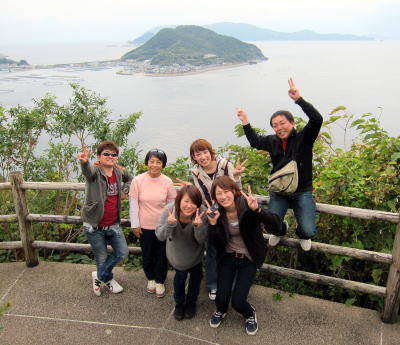 | 最後は展望台で記念撮影♪ さぁ、ここからグルメの旅はさらに続く〜っ! |
