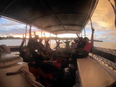 翌朝はお天気も快晴♪ パラオツアー恒例ご参加の皆様 & 初参加の皆様と ワイワイ楽しいパラオでのダイビングへ いざ出発〜っ! |