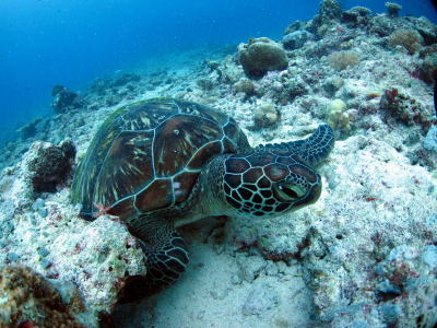 | 大人しいカメさんも 動じることなくのーんびり♪ 水面で出会ったタイマイちゃんも こっちに様子を見に来ては帰り〜 見に来ては帰り〜 まるで友達かどうかを探っているかのうようでした! |