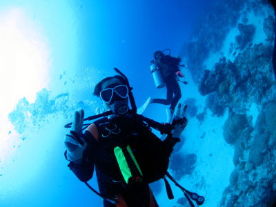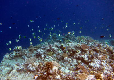 この日は、 ブルーコーナー&ブルーホールへ! 休憩中のホールの壁沿いではツノダシも群れていました! |