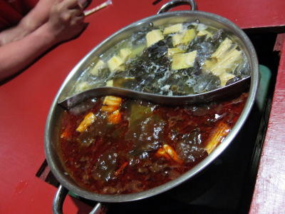 初日の夕食は「九州居酒屋」へ! 名物のお父さんと一緒に写真撮影してもらいました! 火鍋は、 昆布にゆばにきくらげなどの不思議な食材の投入から始まり だんだんなぜかはまっていくのです〜! 餃子も美味しかったですね〜(*^。^*) |