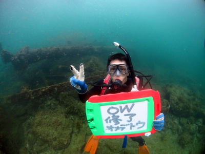 | そして、無事にOWダイバー認定でーす!! ようやくですね(*^。^*) これからダイビング楽しんでいってくださいね♪ |