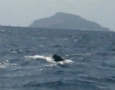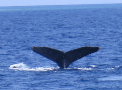 お母さんが潜る直前のテール! なんと2日間連続で同じ仲良しの親子クジラちゃんと 出会うことができました〜(^-^) |