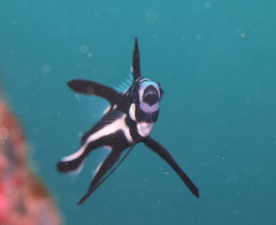 ホホスジタルミの幼魚、カメラ目線を向けてくれています。 泳ぎ方がかわいいですね〜(*^。^*) |