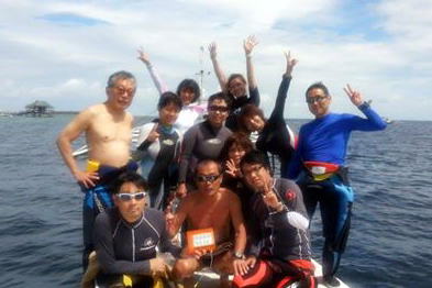 | 皆様、念願のジンベイとのダイビングを終えて 大満足v(^-^)v でも、また会いたいですね〜♪ |