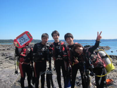 こちらはOW講習2日目の皆様! 3名様は前回台風の影響下での講習だったので 穏やかな海でのーんびり講習です(^-^) |