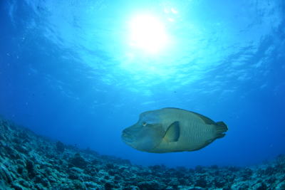 D800がパラオに上陸〜(*^。^*) ブルーコーナーのナポちゃんも 素敵なカメラで撮って〜と やってきてくれました♪ |