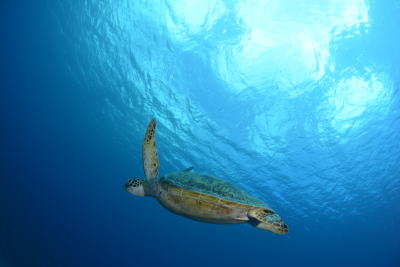 青い青い海には ウミガメさんがいーっぱい♪ 仲良しのタイマイさんは一緒にスイスーイ! |