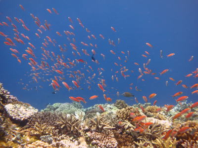 | サンゴにカラフルなお魚の群れが映えますね〜!! | ![]() |