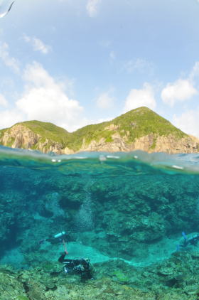 今回のこの半水面も 青い空 島の緑 そして透き通った海 座間味の海を1枚で素敵に表現\(^O^)/ |