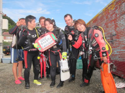 秋の気配が漂う串本で OW講習&AOW講習&ファンダイブへいってまいりました! 今回は、ギリシャとインド?!がコラボの ワールドワイドなツアーになりました(^_-) ご参加いただきました皆様 有難うございました〜\(^O^)/ |
