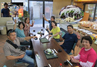 柏島ツアーの帰りは食いだおれ?! 芋ケンピに かつおのタタキは定番化してますね(*^_^*) Cさん、ご馳走さまでした! Fさんも、ビールご馳走様でした〜(^○^) |