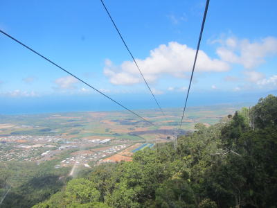 | 陸に戻って最終日は観光〜!! スカイレールでキュランダ村へ向かいます(*^_^*) 高〜いところからの見晴らしは最高♪ 急に早くなったり遅くなったりするスカイレールには 笑いがでます♪ Uさん、バロン滝駅では降りたらダメですよ〜(^_-) |