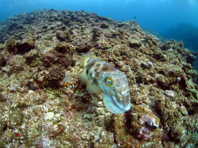 もちろんダイビングも満喫〜! 少し風が強い二日間でしたが、慶良間諸島は島に囲まれているので 思ったよりも穏やかなんです! こちらはウチャカシで出会ったコブシメのレディー(*^_^*) お腹がパンパンのようだったので、 お相手を探しているところだったのかな〜? バックでは、クジラのソングも聴こえていましたよ〜♪ |