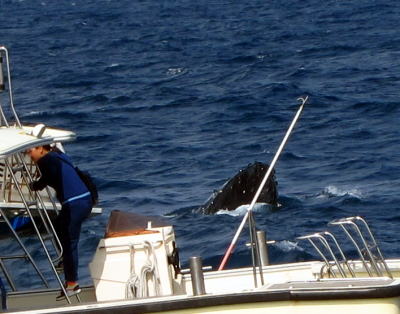 | 時々テールをあげて潜っていく姿も見られましたが こーんなに船の目の前だともうヤバイですね〜っ!!! |
