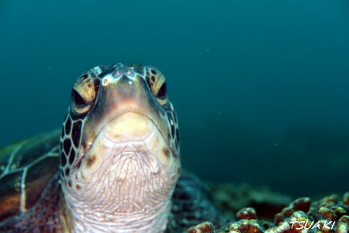 カメラ目線で 「なんか用?」と言いたげなウミガメさん 休憩中にお邪魔しちゃってゴメンね〜(^-^) |