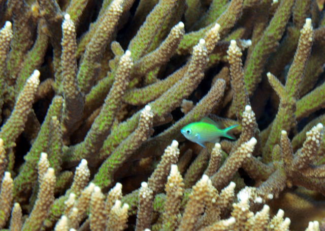 ![]() サンゴの隙間にはなんとデバスズメダイと思われる個体がっ! 物凄く恥ずかしがり屋さんなんですが、じっくり粘ってなんとか証拠映像GETです\(^O^)/ 冬になってもまだまだ暖かい海の生き物は頑張ってますよ〜! |