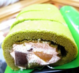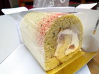 抹茶のスポンジケーキの中にあんみつ&生クリームの組み合わせが意外にマッチして