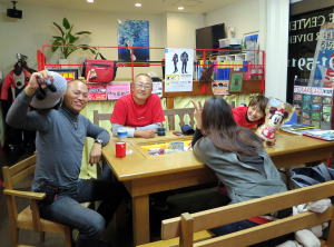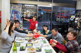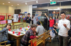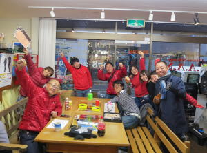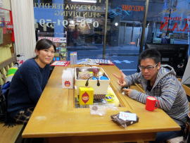 新年会ツアーに向けて、器材をお持込のM姉さんからはから揚げの差し入れ♪