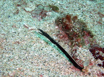 ボートポイントでは 可愛らしいハナヒゲウツボの幼魚が 出迎えてくれました。 背中の黄色いラインがとっても美しいですよ。 |