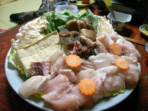 クエの登場! いつもながらに素晴らしい(^-^) 串本であがった天然クエだそうですよ! 鍋の後も、雑炊がたまらなく美味しい〜んです! |