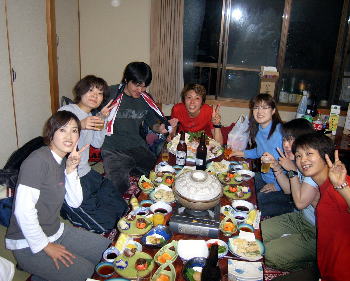 | チームピンク! ダイビング満喫してのクエ鍋突入! 地元の方から 三重・千葉より ご参加いただきました! |
