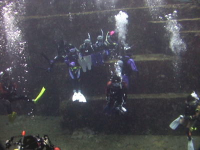 もちろん海底遺跡も潜りましたよ! 流れが弱かったので、 メインテラスでゆっくり遊ぶこともできました(^-^) 巨人の階段に腰かけて、記念撮影です! |