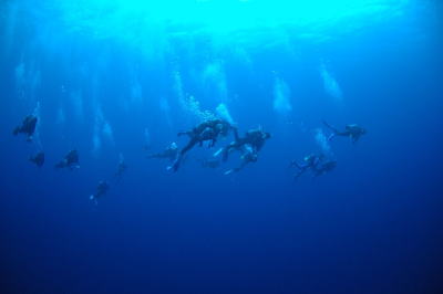 なんとなんと、遺跡の亀岩で 全員でピラミッドなんか作っちゃいましたよ! これは、もう皆様の素晴らしいチームワークのたまものですね(^-^) さすが、日頃から潜りこまれたカーンの精鋭ダイバーの皆様です!! きっと世界中探しても、 海底遺跡でピラミッド作った人なんて そうはいませんよ〜っ! これまた皆様に拍手(^O^)♪ そして、一番土台部分で、 うねりや流れを支えてくださった皆様も 有難うございましたm(_ _)m |