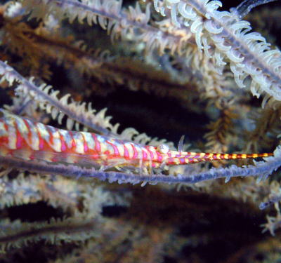 甲殻類もいっぱいです! こちらはゴルゴニアンシュリンプ! カクレンボしていました。 |