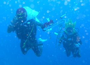 | そして、水中ではこんな素敵な方々にも出会っちゃいました! 七夕ということで、お星様と???マン登場!! 月末、お世話になりまーす\(^O^)/ |