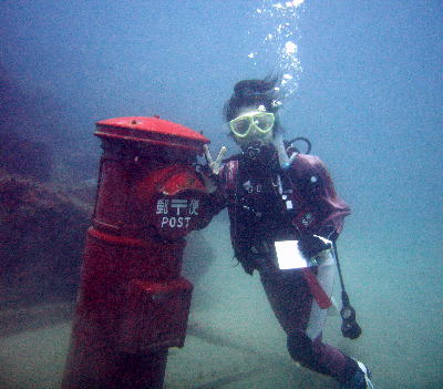 すさみでは 水中ポストへ! お手紙投函すると、実際に届くんですよ。 |