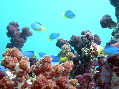 | 水は青く ソラスズメダイは乱舞 素敵♪ |