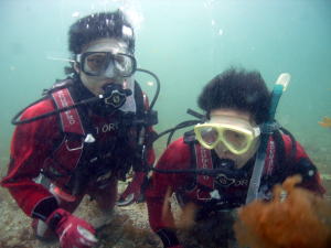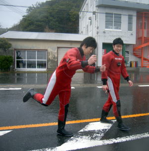 | あらよっと! 潜るで潜るで〜! ドライスーツって本当に不思議ですよね。 雨はもちろん、海に入っても体が濡れません! だから一年中海が楽しめるんですね。 ありがとう!ドライスーツ! |