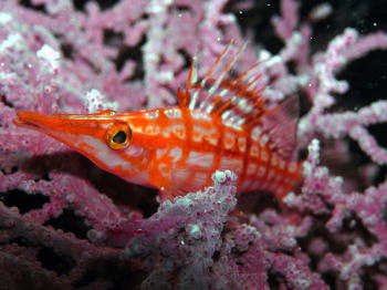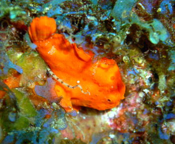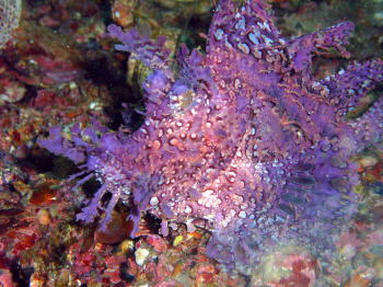 | 今回の大発見! 紫色のボロカサゴです! 柏島でも久しぶりの発見だったようですよ。 すごい色ですね。 |