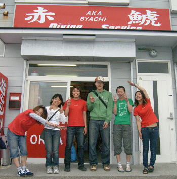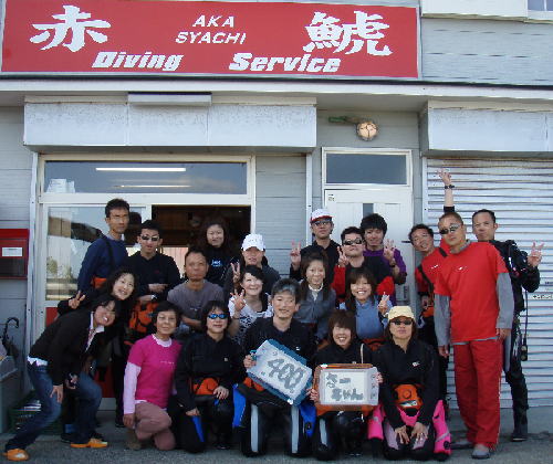 | 週末利用で柏島へ行って来ました! 先日の平日ツアーで、ホムラハゼフィーバーが巻き起こっていたので 期待は膨らむばかり。あまりに熱い想いは、殺気となってお魚さんに伝わってしまうので 押さえて〜押さえて〜と言いつつ、エントリーしてきました! ストーンウォールでは、柏島へ行ったら是非見たいアケボノハゼに。。。振られました。 そんな時、コブダイがにゅーっと現れて、私たちを元気付けてくれます。 そこで2本目は、勤崎へ! しかしまたまた振られました・・・思いが熱すぎる?! (^-^; ブルーの鮮やかなハナヒゲウツボにご挨拶をして、 3本目は、悲願のホムラハゼポイント! 前回バッチリ見られていた穴にGO!いた〜〜〜でも奥過ぎる〜! 目視するにとどまり、写真はあきらめたのでした〜写真に撮りたいNさんは、胃カメラみたいなのが あればいいのに・・・・とつぶやきつつ。 夜はビールでカンパーイ! そして迎えた2日目。 再びホムラチャレンジ〜! 昨日とは違う穴へ向かうと・・・ガッツリ出ていますホムラハゼ! しかも2匹いるではありませんか〜テンションアップアップ! で、テンション上がりすぎてペアの写真は撮れなかったんですけどね〜 とにかくゲットできた喜びはひとしお。このために静岡からツアー参戦していただいた Tさんも大満足でしたよね? ラストはアケボノ! 昨日の勤崎はエントリーできない状態だったので、民家下北北というポイントに賭けます! 見渡せど見渡せど、いません・・・・ あきらめて浮上しようとしたそのとき、ベルの音が! 出ましたアケボノです!しかし、しゅっとすぐに巣穴へ引っ込んでしまいました〜! 残念。。。でも、出会えたことで満足満足。 ホムラポーズをとりつつ、記念撮影をして帰ってきました! ダイビングの楽しみ方は、人それぞれですが、こんな宝探しのようなスタイルも 楽しみのうちの一つですね。 |
