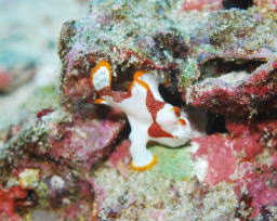 | 柏島フリークの★★様 撮影 3cmほどの可愛らしいサイズのクマドリカエルアンコウは いつ見ても叫んでしまいます 「惚れてまうやろ〜!!」 |
